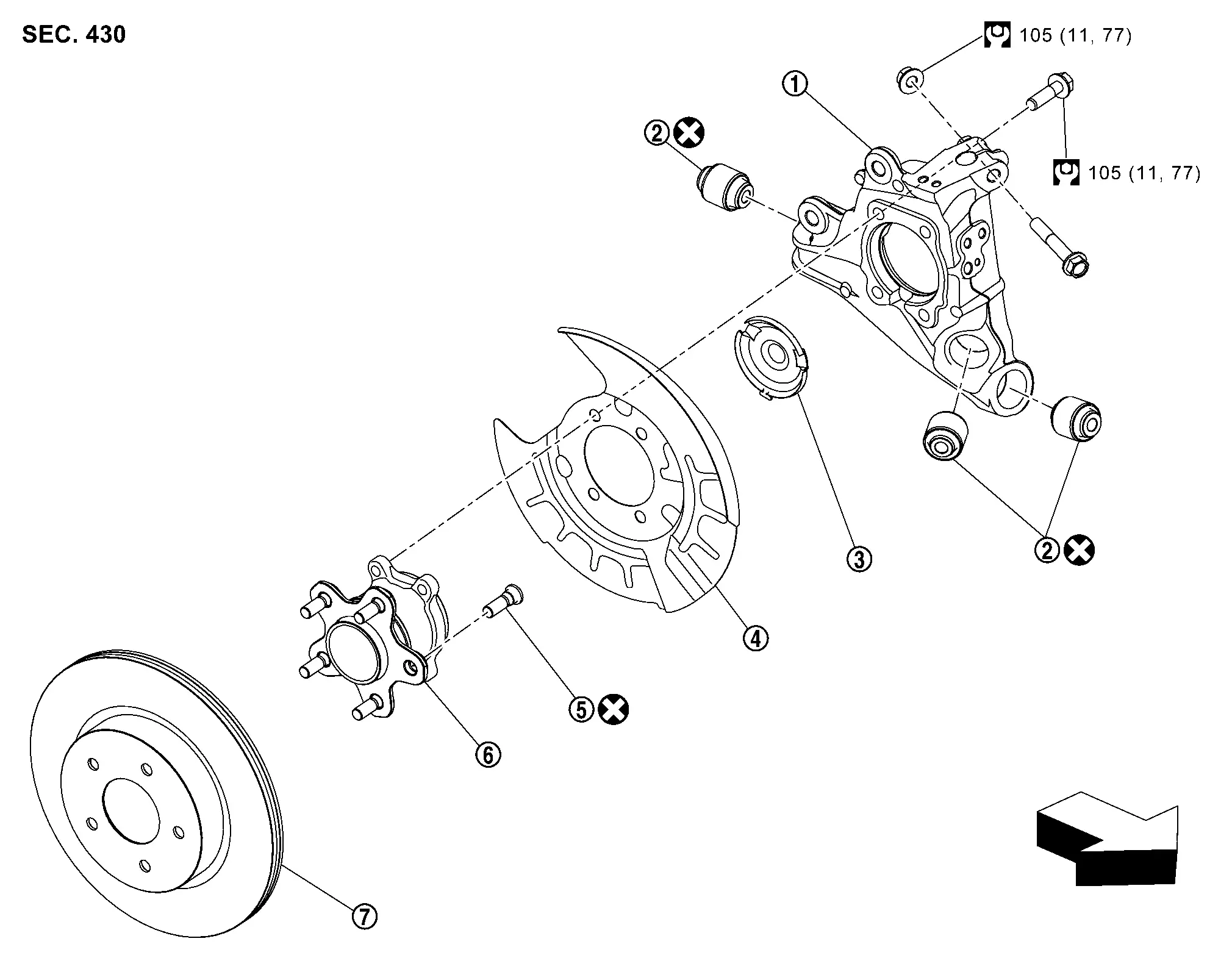 Nissan Rogue (T33) 2021-Present Service Manual: 2wd :: Removal and Installation. Rear Wheel Hub and Housing