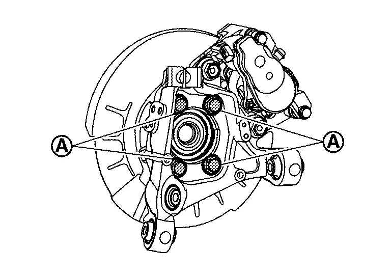 Remove wheel hub and bearing assembly mounting bolts (A) .