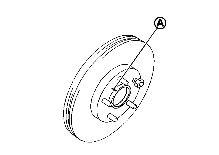 Put matching marks (A) on the wheel hub and bearing assembly and the disc rotor before removing the disc rotor.