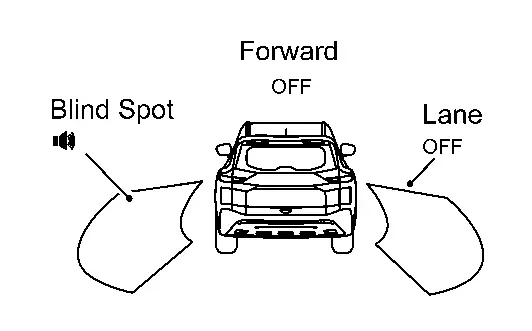 OFF Nissan Ariya Vehicle is detected Turn signal is OFF — ON BSW system indicator : White