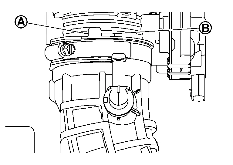 If removed, align tab (B) of air duct with tab (A) on admission valve.