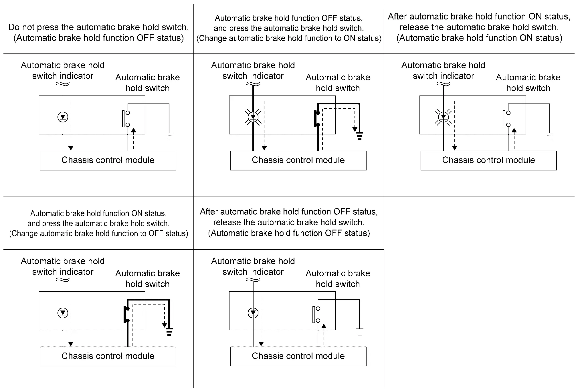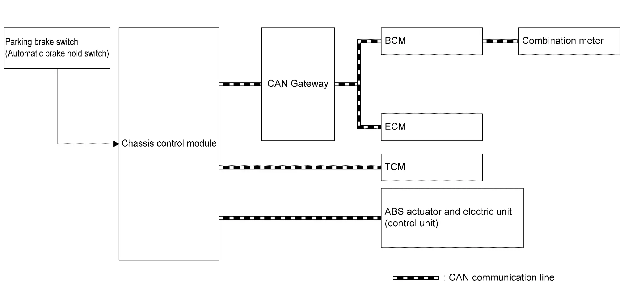 Chassis control module receives information required for controlling via CAN communication and from each switch to control automatic brake hold function.