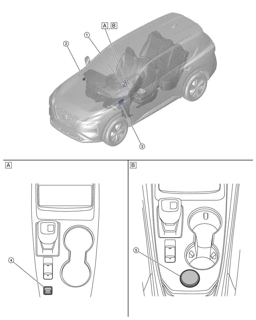 | 5. | Drive Mode Select Switch (AWD) | Refer to Component Parts Location. |
