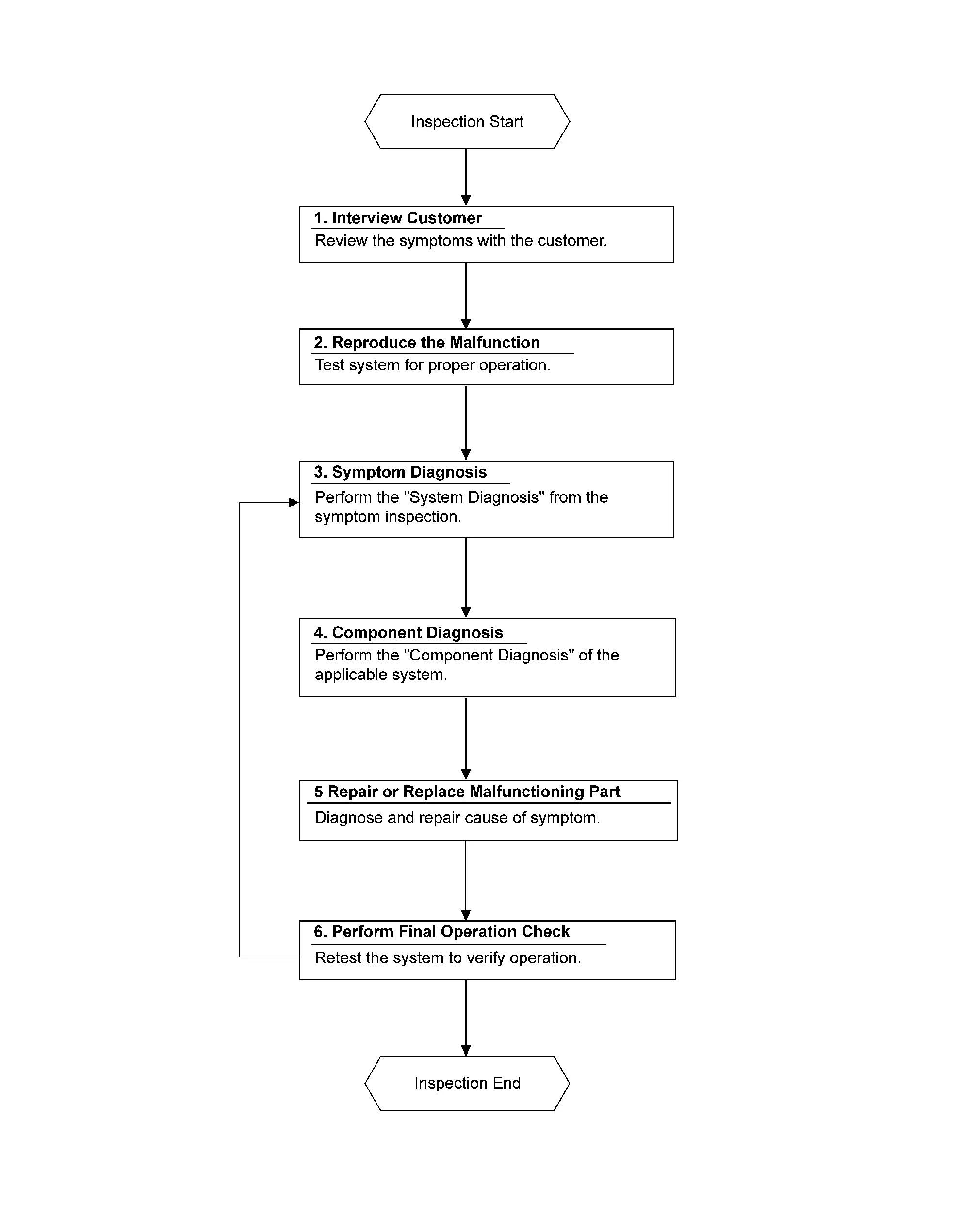 Use Symptom diagnosis from the symptom inspection result in step 2 and then identify where to start performing the diagnosis based on possible causes and symptoms.