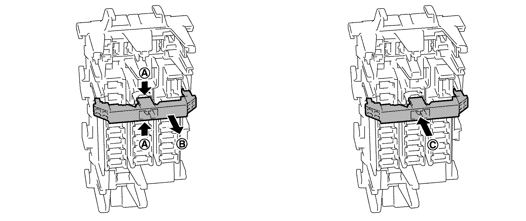 To place extended storage switch in driver position, press it in (C) direction as shown in the figure.