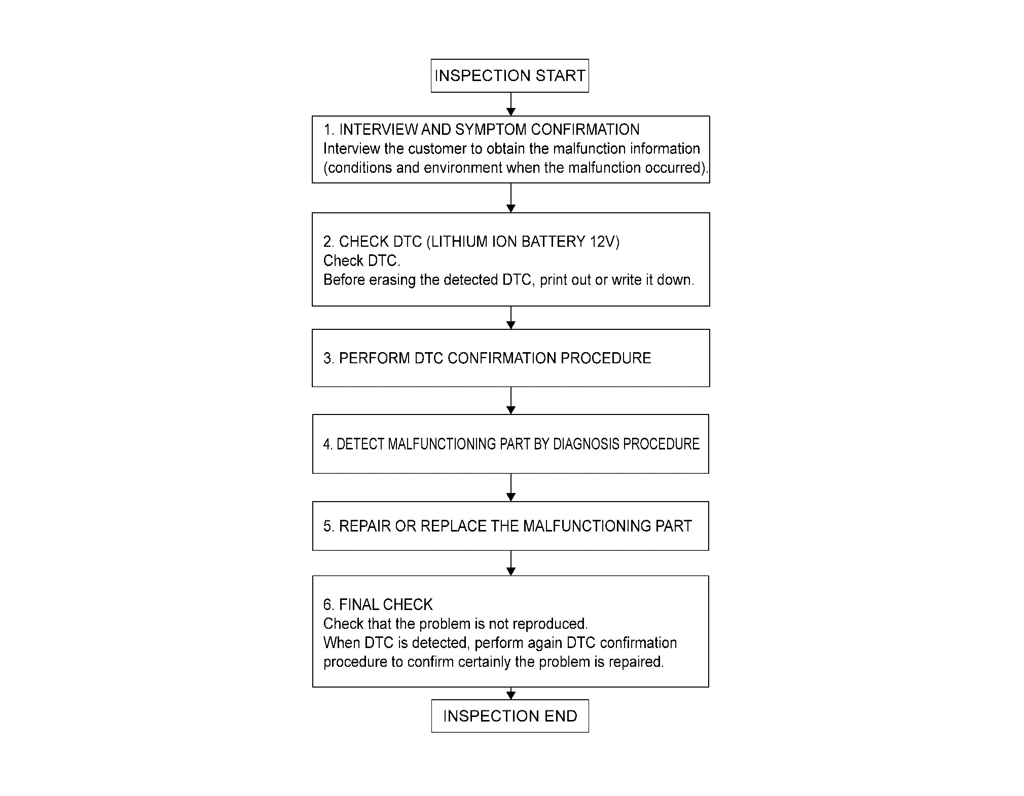 Nissan Rogue (T33) 2021-Present Service Manual: Basic Inspection :: Lithium Ion Battery 12v. Diagnosis and Repair Work Flow