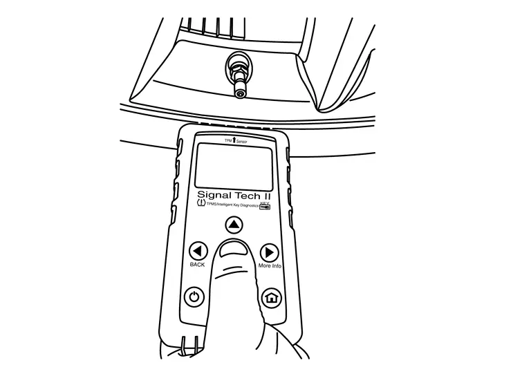 Hold the Signal Tech II against the side of the left front tire, near the valve.