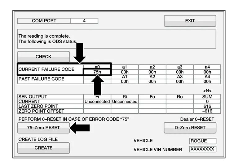 Verify code "75h" is NOT displayed under CURRENT FAILURE CODE.