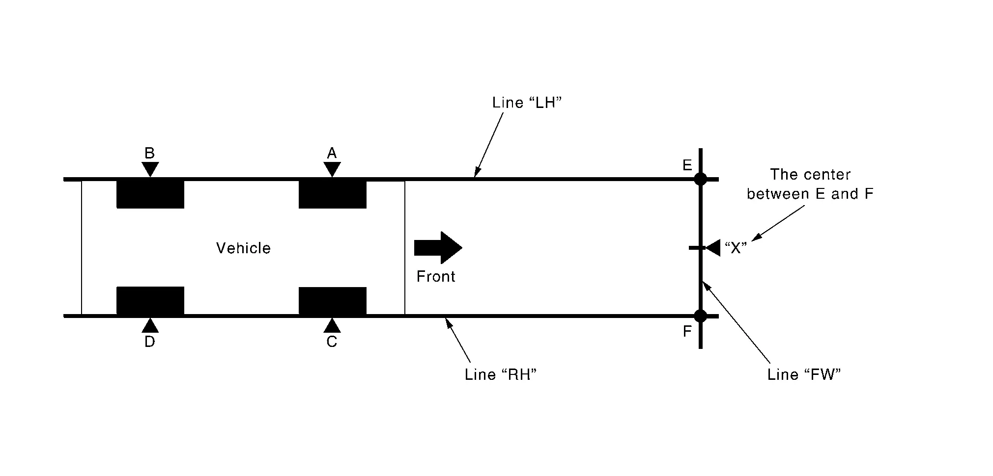 Draw line “FW” passing through the points “E” and “F” on the front side of Nissan Ariya vehicle.