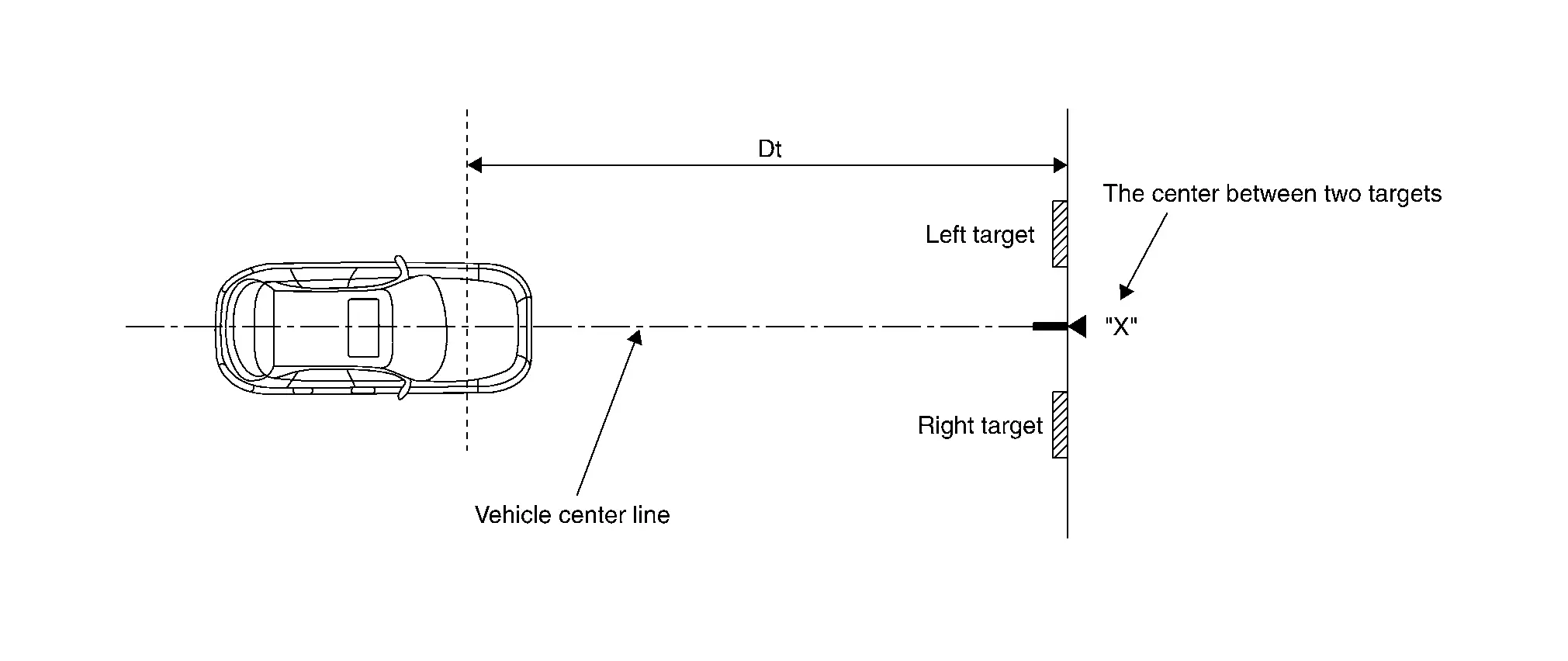 The target may not be detected when there is the same pattern of black and white as the target when the pattern is within 1 m (3.28 ft) from either side and upward/downward position from the target. (It is desirable that the Nissan Ariya vehicle is positioned on the opposite side of a single-color wall.)