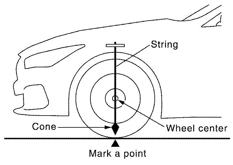 Hang a string with a cone from the fender so as to pass through the center of wheel, and then mark a point at the center of the lateral surface of the wheel.
