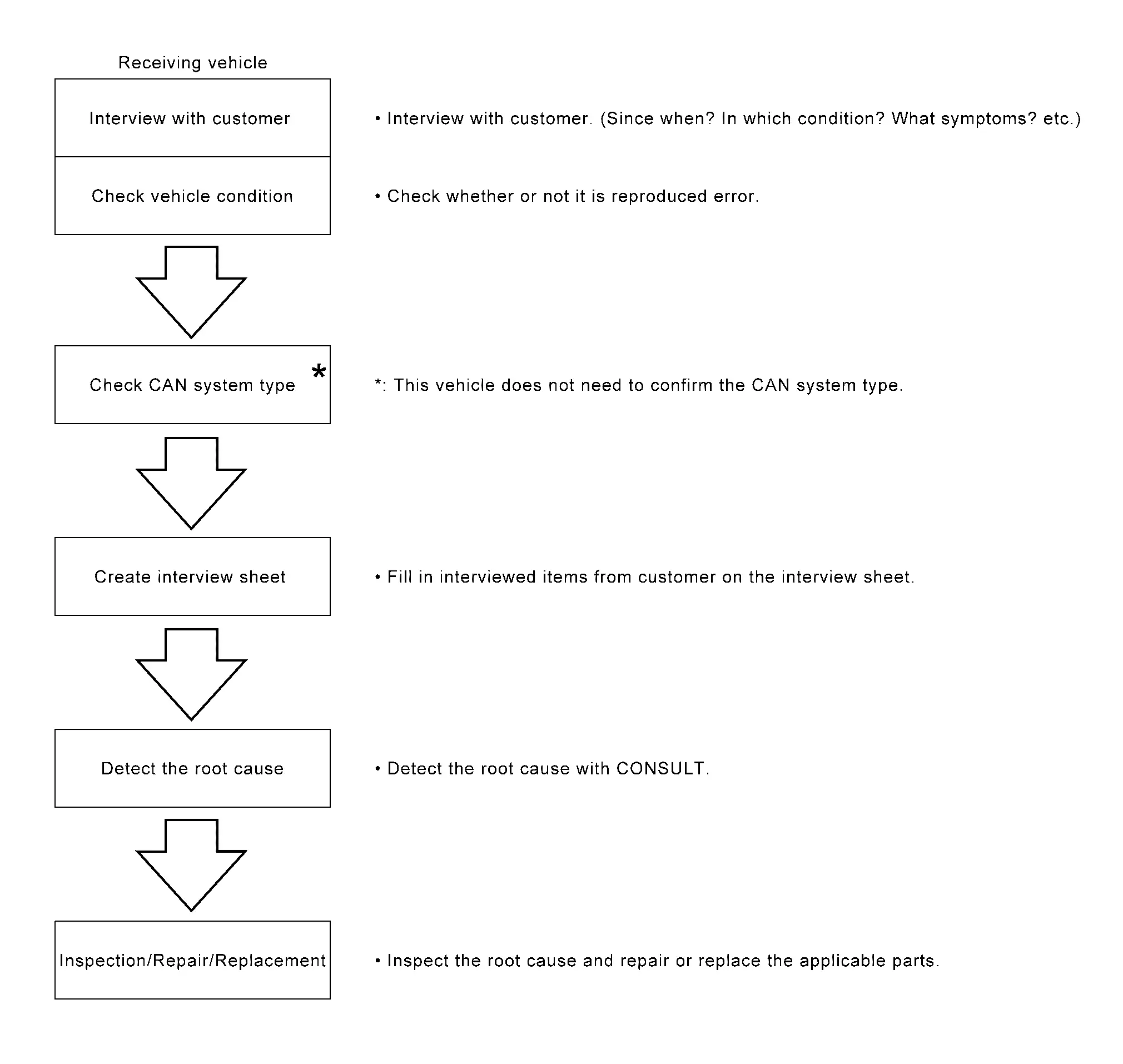 Nissan Rogue (T33) 2021-Present Service Manual: Can Fundamental :: Basic Inspection. Diagnosis and Repair Work Flow