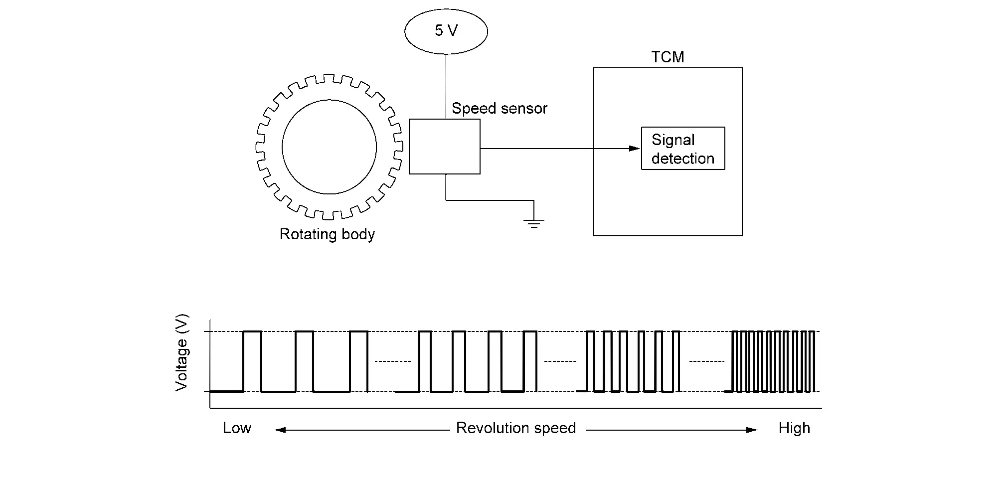 The input speed sensor transfers detected input shaft speed to TCM as pulse signal.