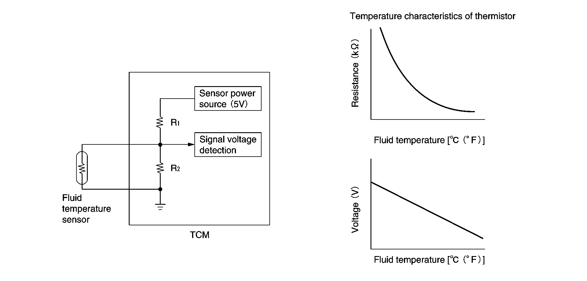 TCM evaluates the CVT fluid temperature from the voltage signal value.