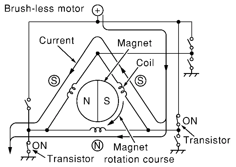 The rotation speed is changed according to the voltage controlled by the A/C amp. and the air flow rate is controlled.