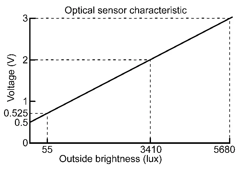 The optical sensor converts outside brightness (lux) to voltage and transmits the optical sensor signal to the BCM.