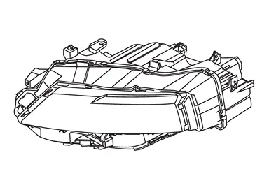 When power is supplied from the battery and the LED headlamp control module receives the control signal from the IPDM E/R, the LED headlamp control module internally calculates the supplied power. The calculated power is distributed to multiple LEDs that consist of circuit boards and other components, illuminating each lamp.