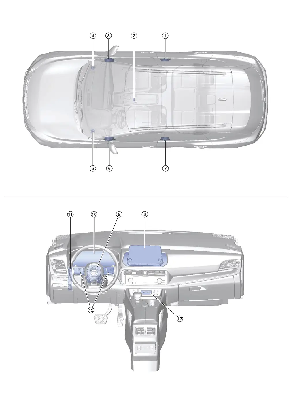 | 2. | Active noise control microphone (Rear) | Refer to Active Noise Control Microphones. |