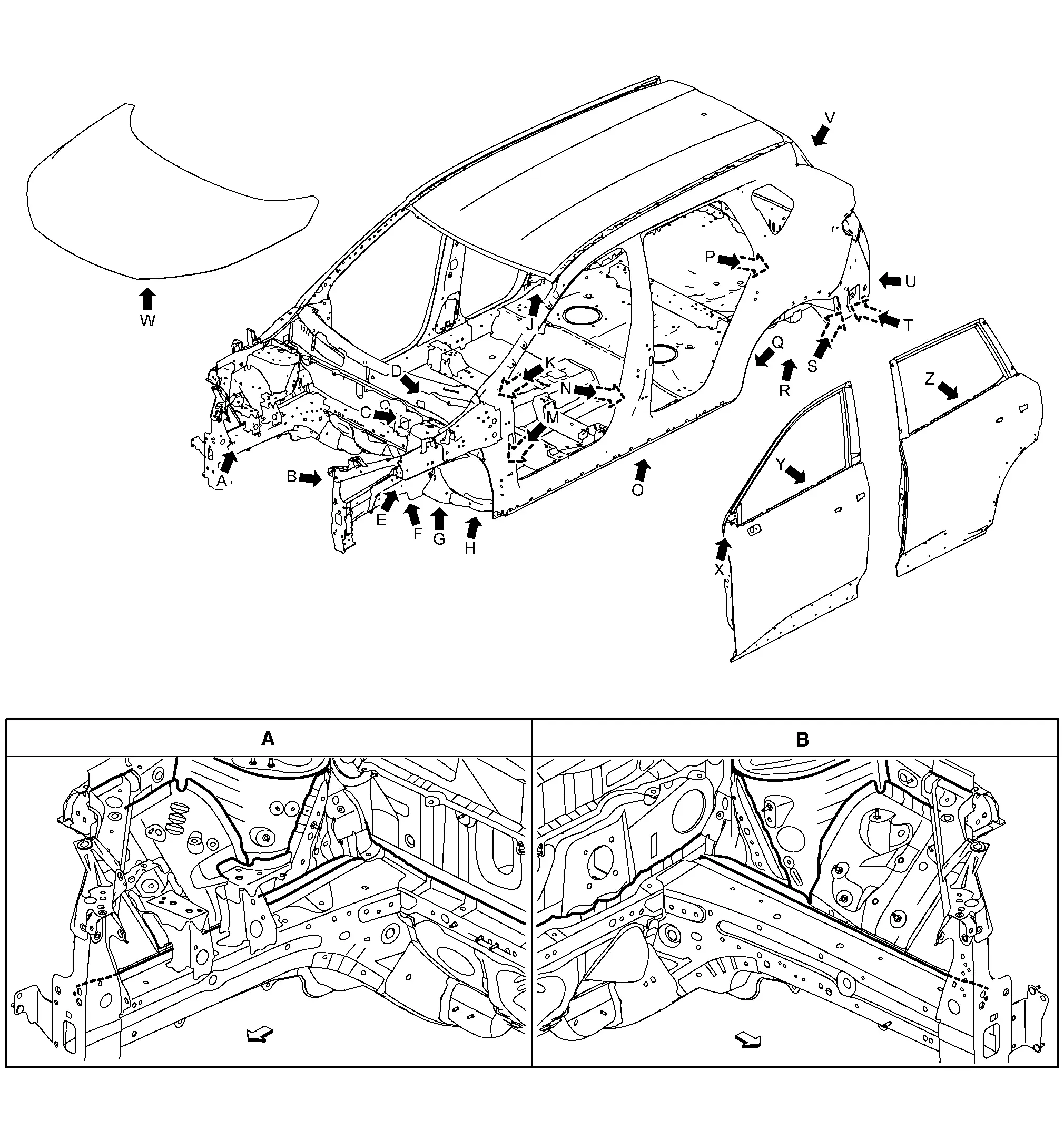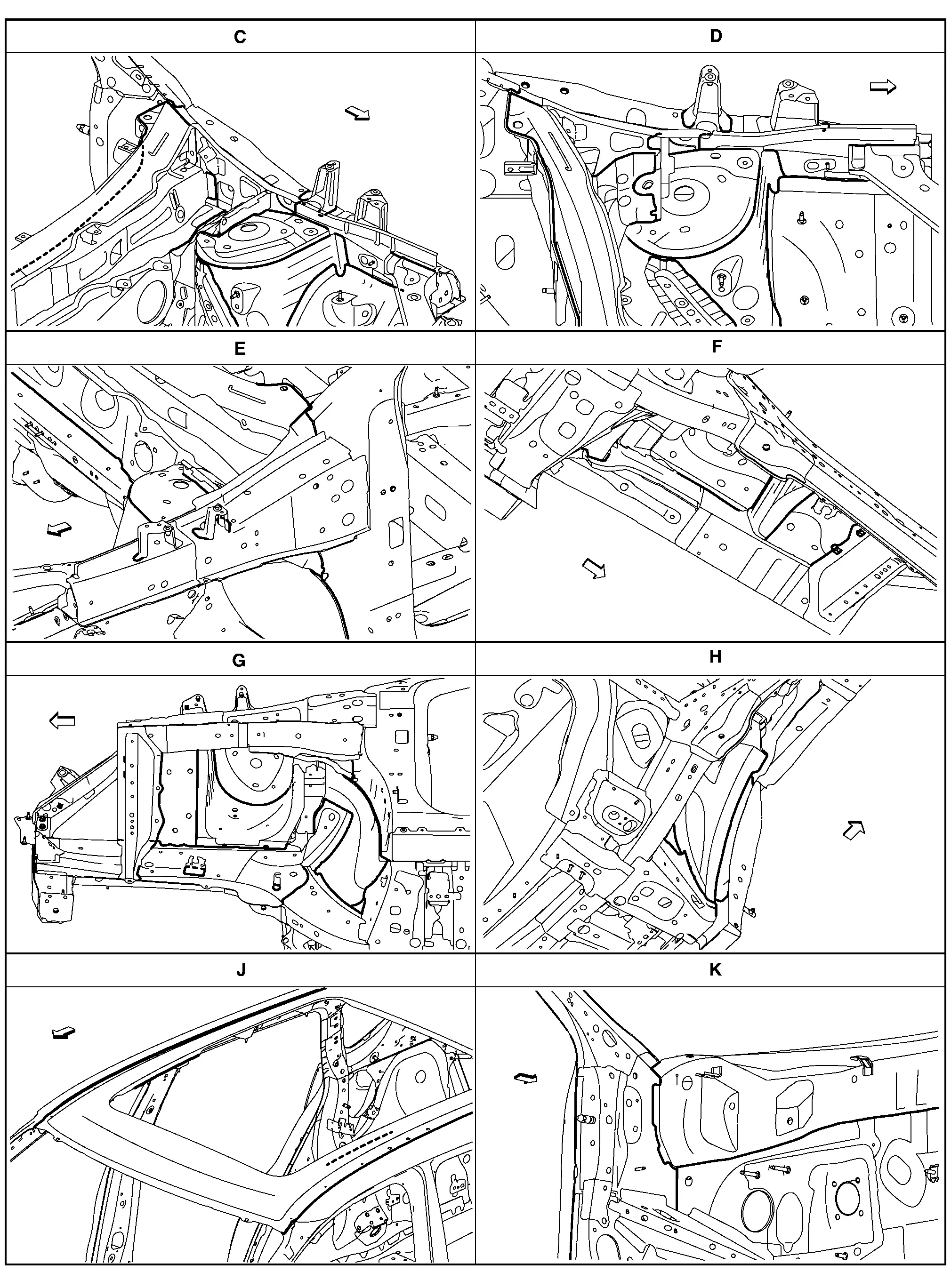 To provide improved corrosion prevention, the following anti-corrosive measures have been implemented in NISSAN production plants. When repairing or replacing body panels, it is necessary to use the same anti-corrosive measures.