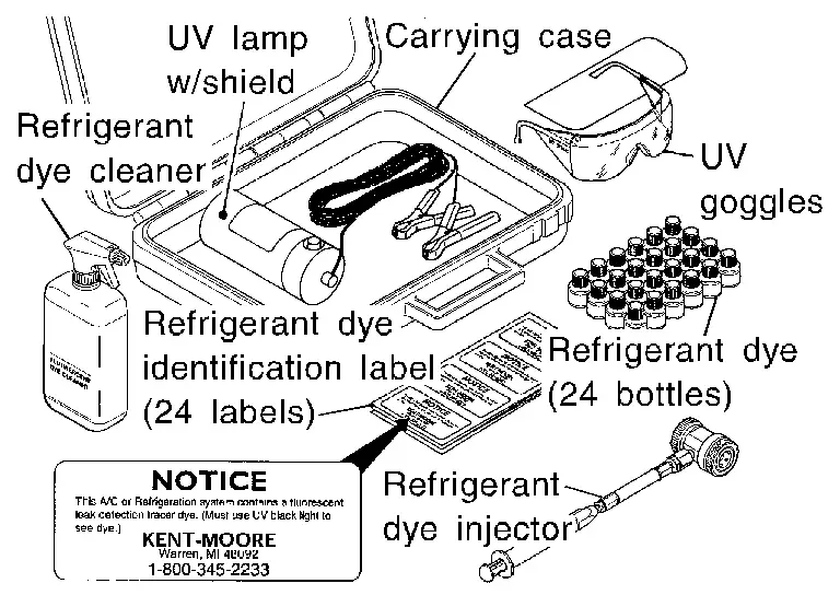 — (NI-43926) Refrigerant dye leak detection kit Kit includes: