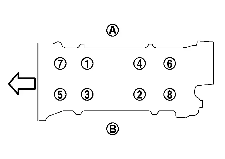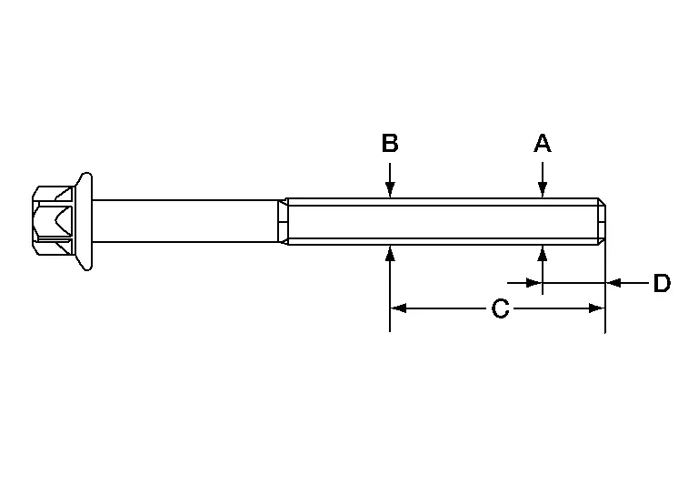 Cylinder head bolts are tightened by plastic zone tightening method. Whenever the size difference between (A) and (B) exceeds the limit, replace them with a new one.