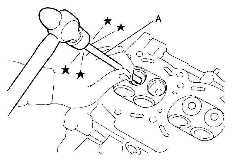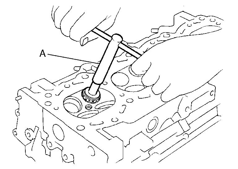 Ream cylinder head valve guide hole with a suitable tool (A).