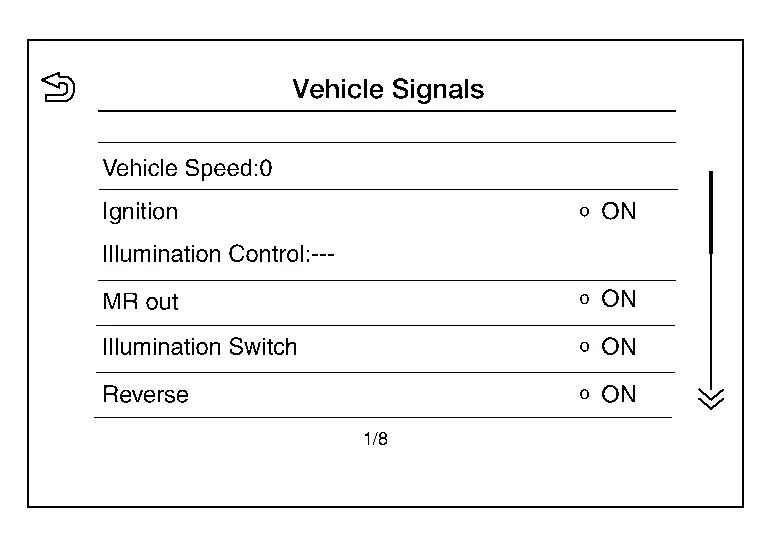 | Nissan Ariya Vehicle Signals | Diagnosis of signals can be performed for Vehicle Speed, Ignition, Illumination Control, MR out, Illumination Switch, Reverse, Parking Brake and ACC. | |
