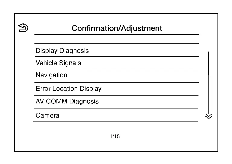 Start the diagnosis function and select “Confirmation/Adjustment”. The confirmation/adjustment mode indicates where each item can be checked or adjusted.