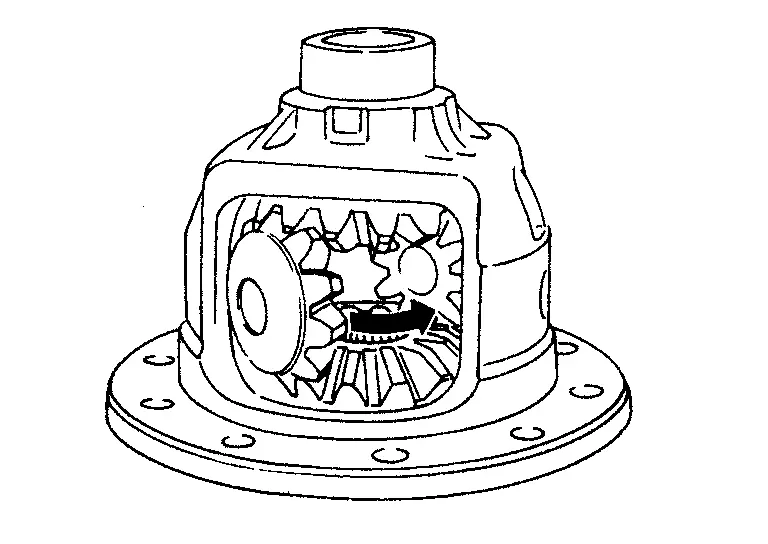 If any wear or crack on the contact sides of the differential case is found, replace.