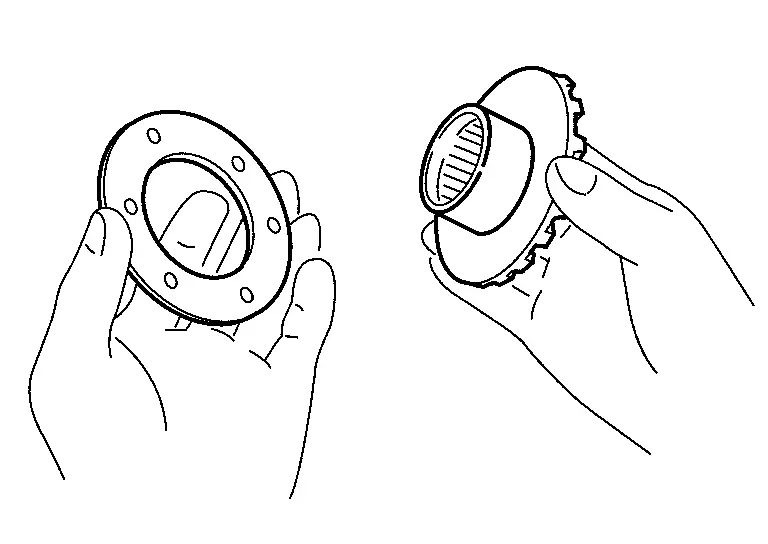 If any chipped (by friction), pitted, worn, rusted or scratched marks, or unusual noise from the bearing is observed, replace as a bearing assembly (as a new set).