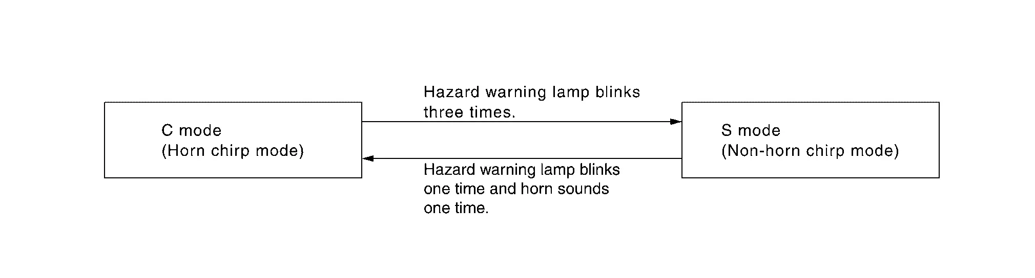 When lock and unlock signal are sent from the Intelligent Key for more than 4 seconds at the same time, the hazard and buzzer reminder mode is changed and hazard warning lamp blinks and horn sounds as per the following items:
