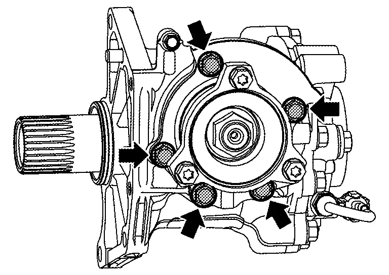 Install pinion bearing assembly, and apply anti-corrosive oil onto thread and seats on the mounting bolts. Tighten to the specified torque.