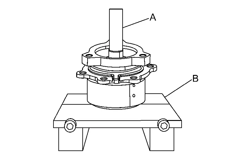 Remove drive pinion from pinion bearing assembly using drift (A) (commercial service tool) and separator (B) (commercial service tool).