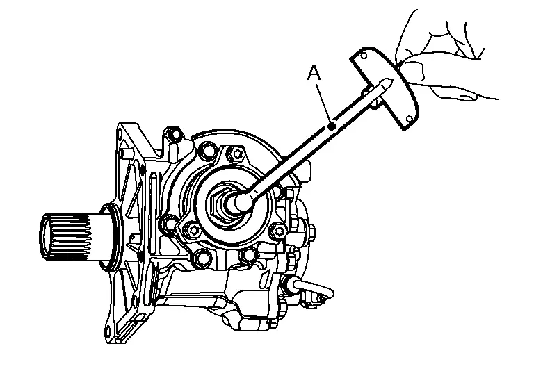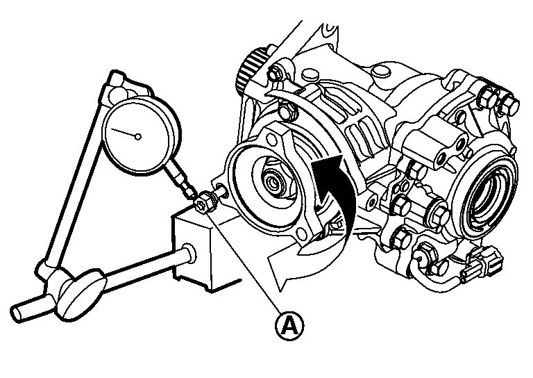 While rotate drive pinion at 30 rpm, measure the total preload with the preload gauge (A) [SST: ST3127S000 (NI-25765-A)].