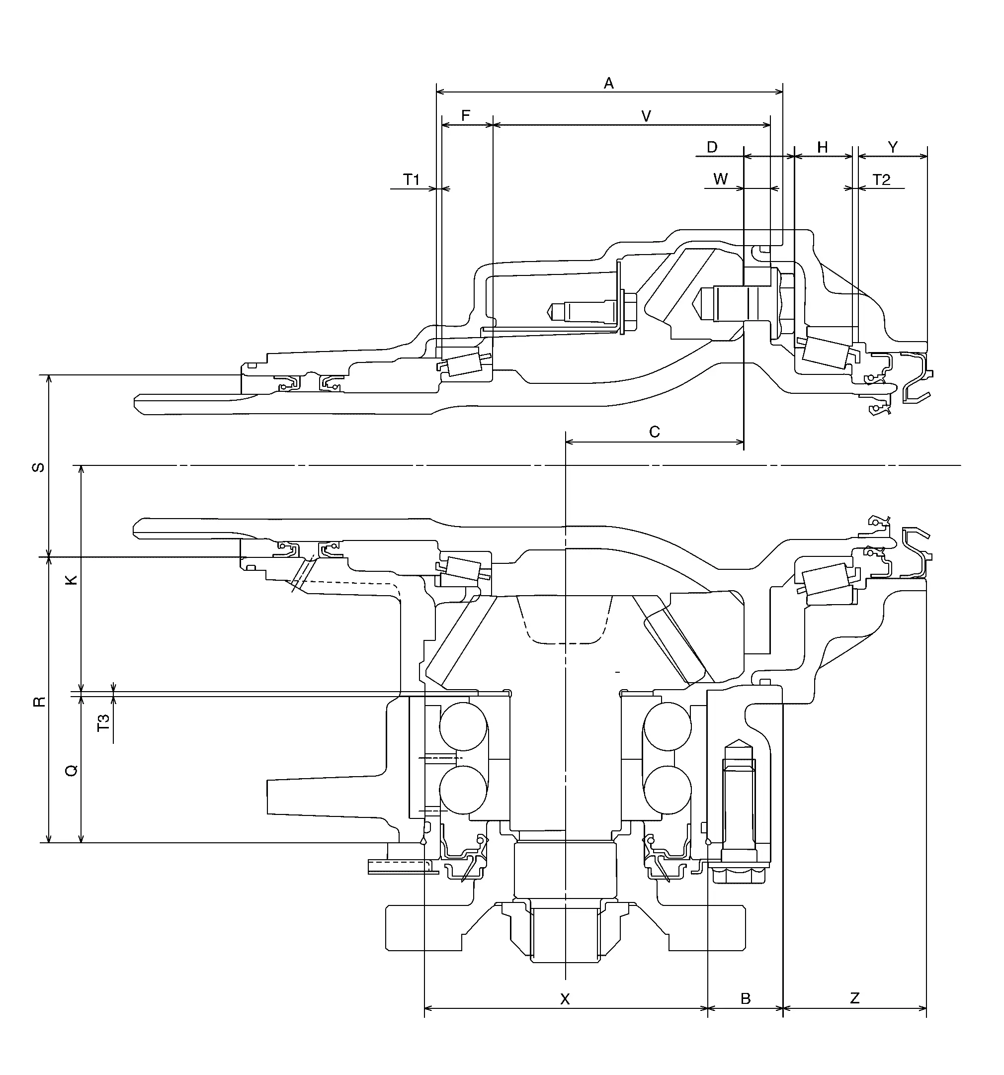 T2 [Ring gear bearing adjusting shim (transfer cover side)]
