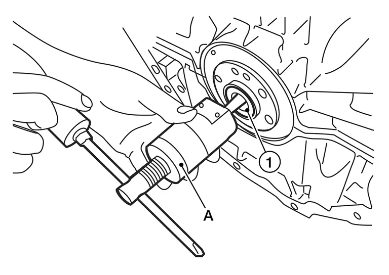from the rear end of the crankshaft. Use a suitable tool (A) if necessary.