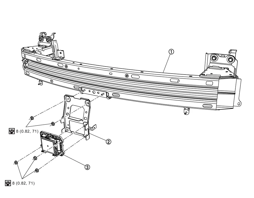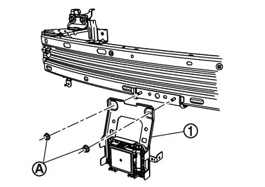 | 1. | Front bumper reinforcement | 2. | Distance sensor bracket | 3. | Distance sensor |