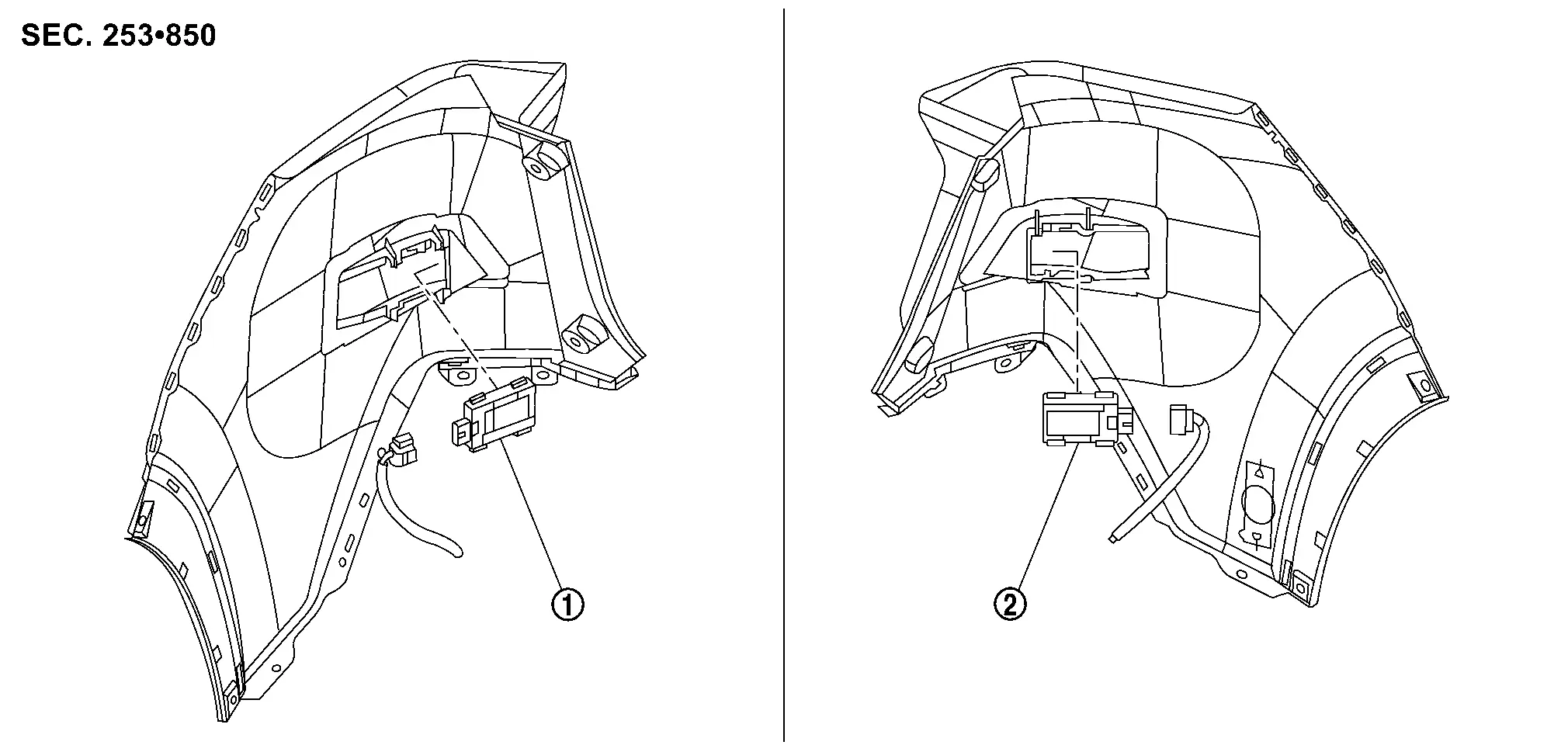 | 1. | Side radar rear (RH) | 2. | Side radar rear (LH) |