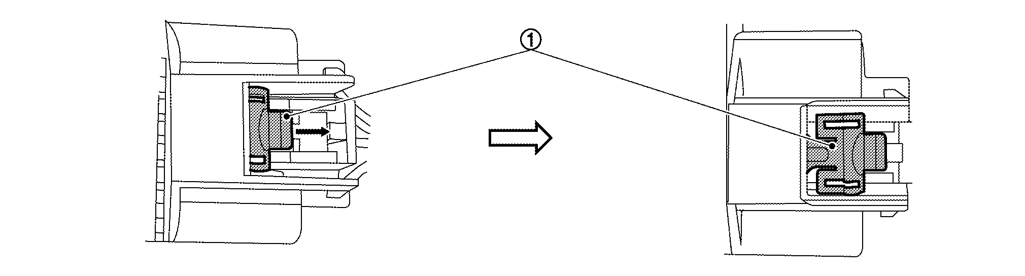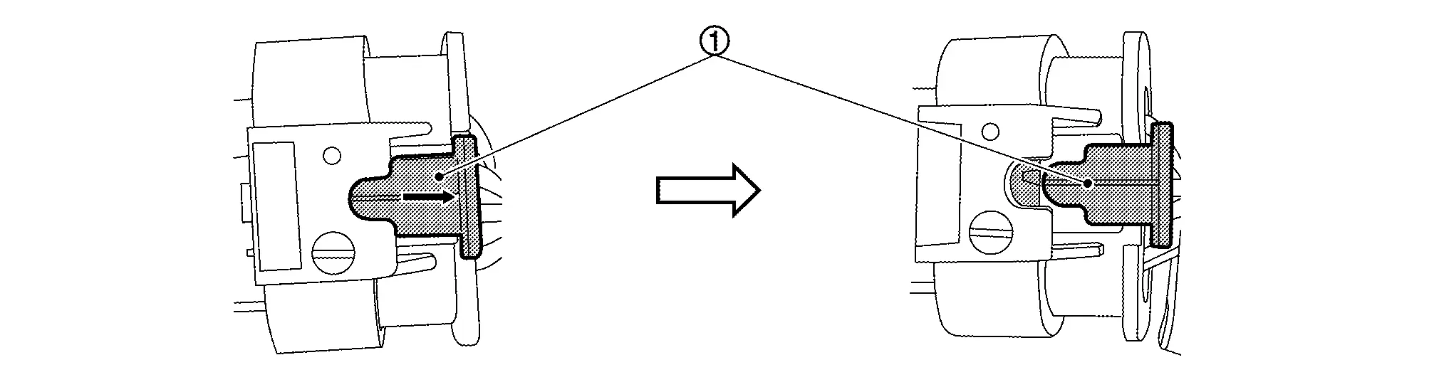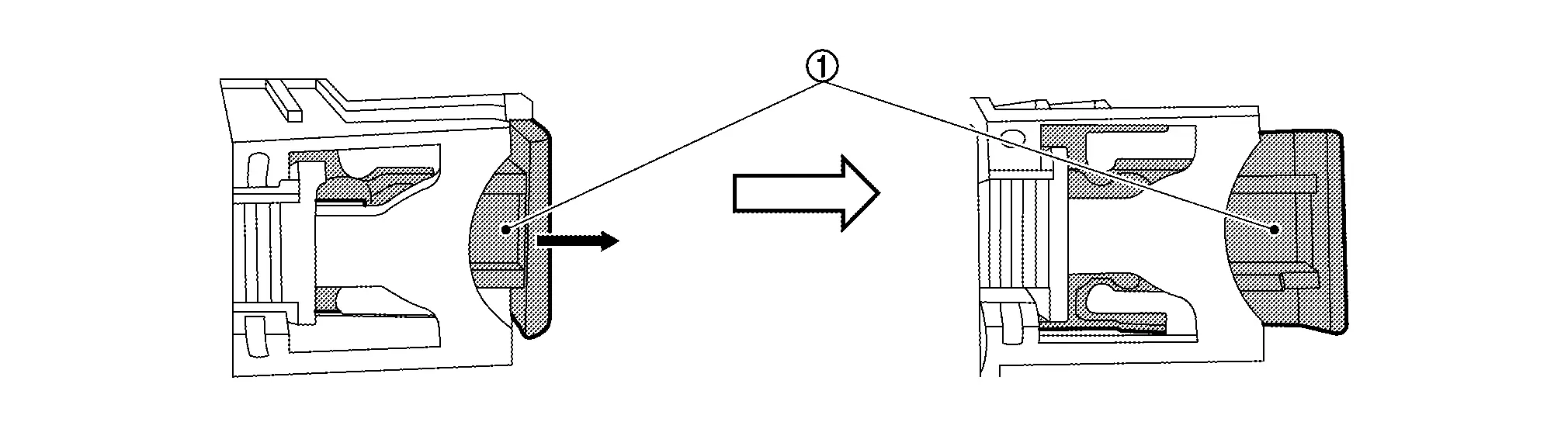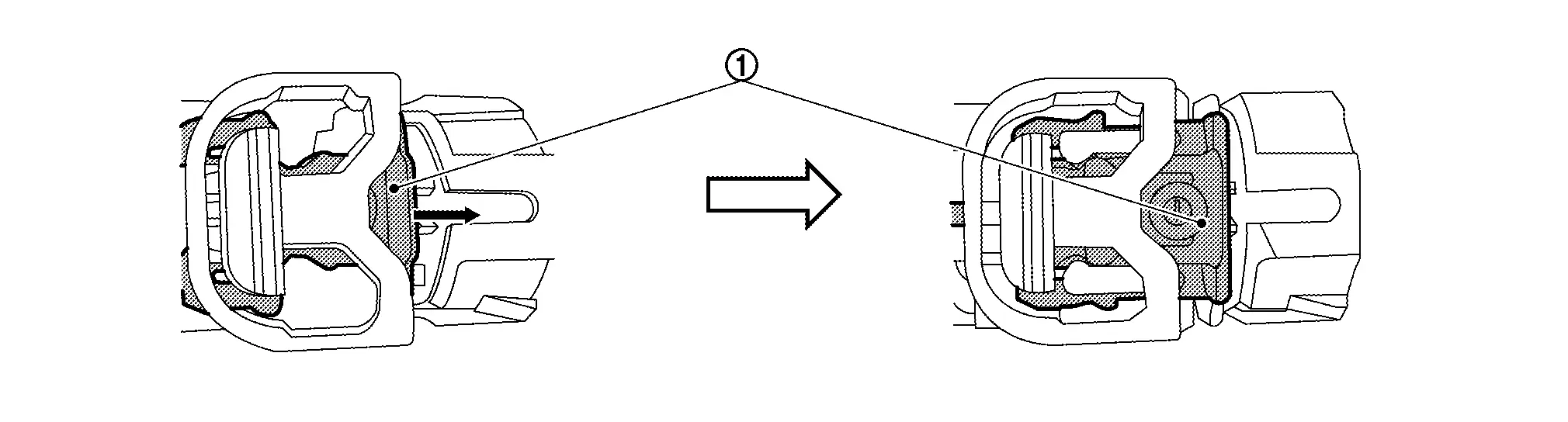 Release the lock (1) as shown by the arrow in the figure and disconnect the harness connector from the distance sensor.