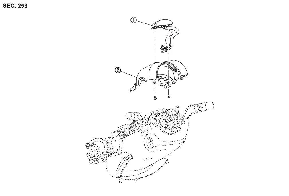 Remove the screws (A), and remove the driver monitor camera (1) from the steering column cover upper (2).