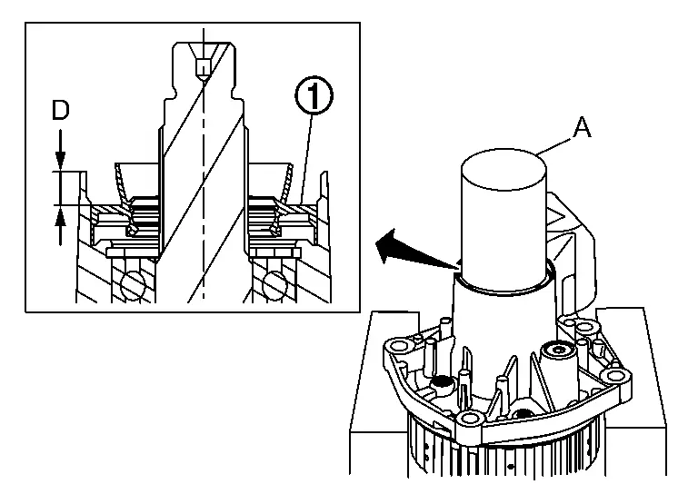 Using the drift (A) (commercial service tool), install electro-hydraulic coupling oil seal