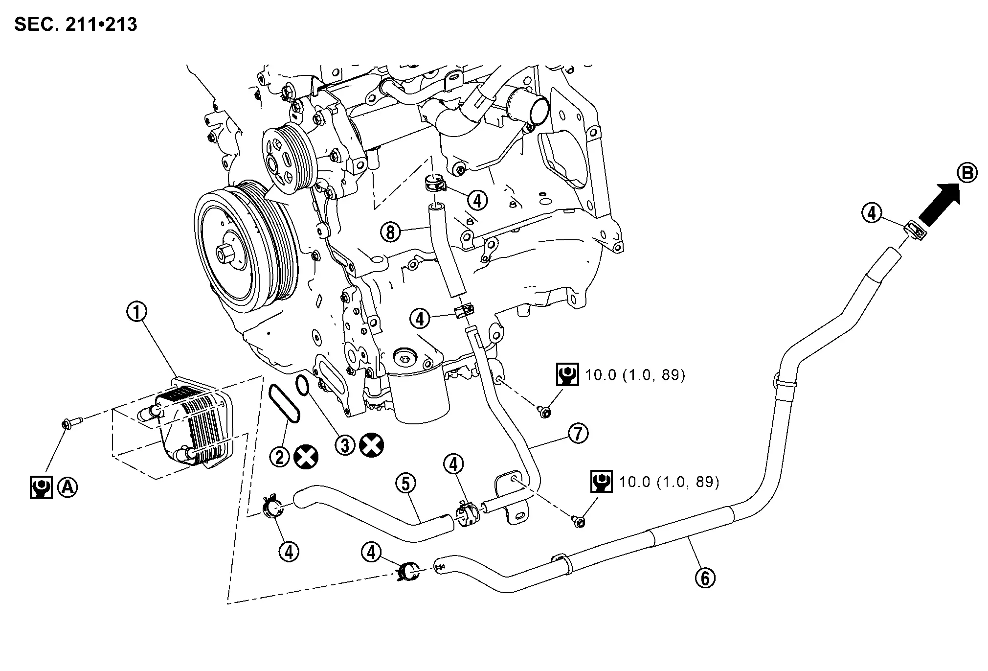 | Oil cooler bolts | : 10.0 N·m (1.0 kg-m, 89in-lb) |