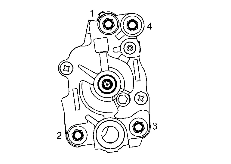 Tighten the oil pump bolts to the specified torque in the sequence shown.