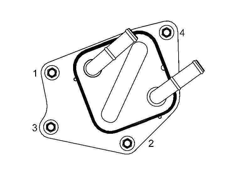 Tighten oil cooler bolts to specified torque in the sequence as shown: