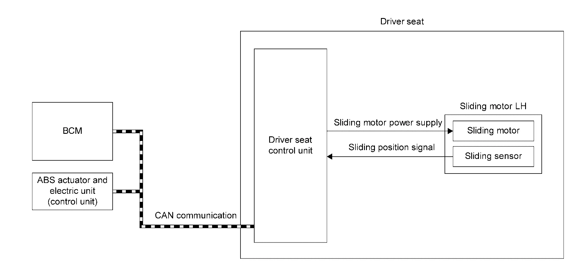 Several types of signals are transmitted from the following units to the driver seat control unit via CAN communication.