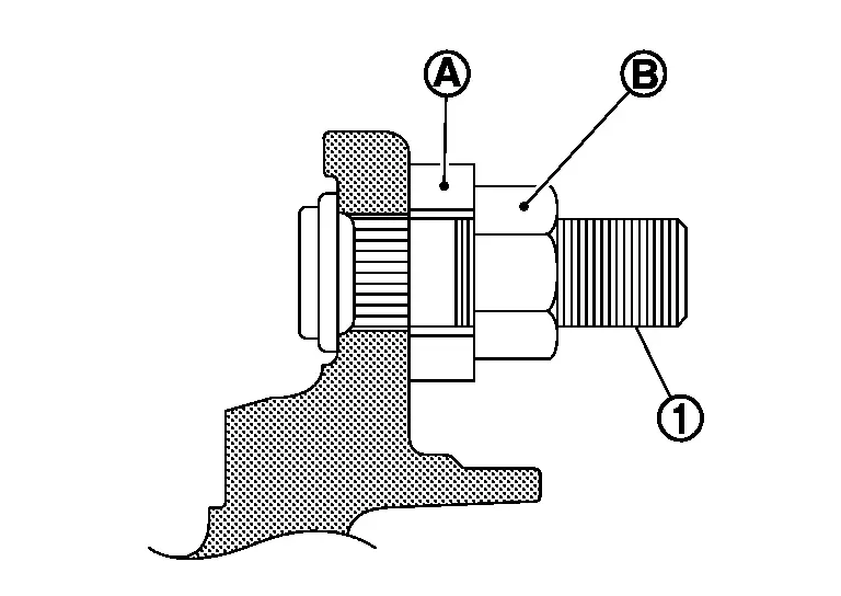 Loosen wheel hub lock nut, using a hub lock nut wrench (SST: KV40104000) (A).
