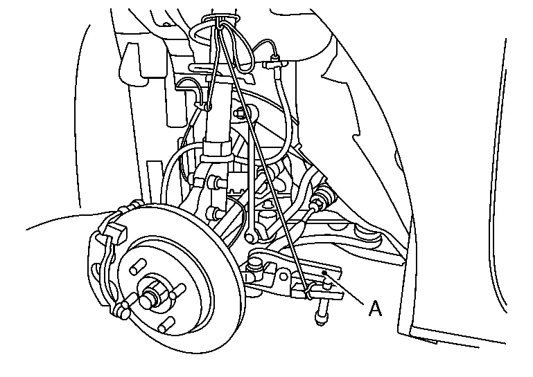 from wheel hub , using the ball joint remover (commercial service tool) (A).