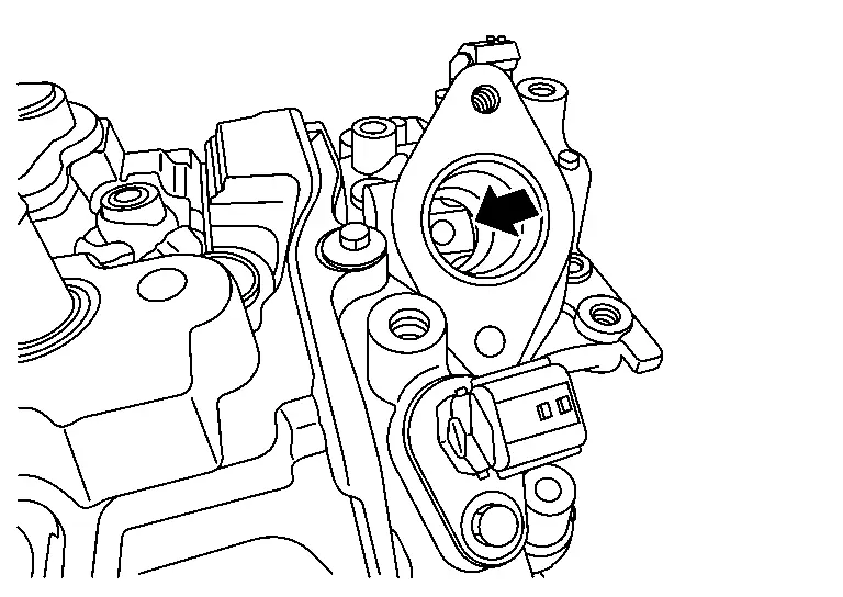 Install high pressure fuel pump according to the following procedure.Check the orientation of pump cam from the mounting area (view arrow) of high pressure fuel pump.