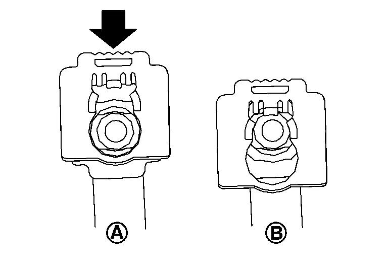 Tighten the high pressure fuel tube bracket mounting bolt (B) specified torque.![]() |