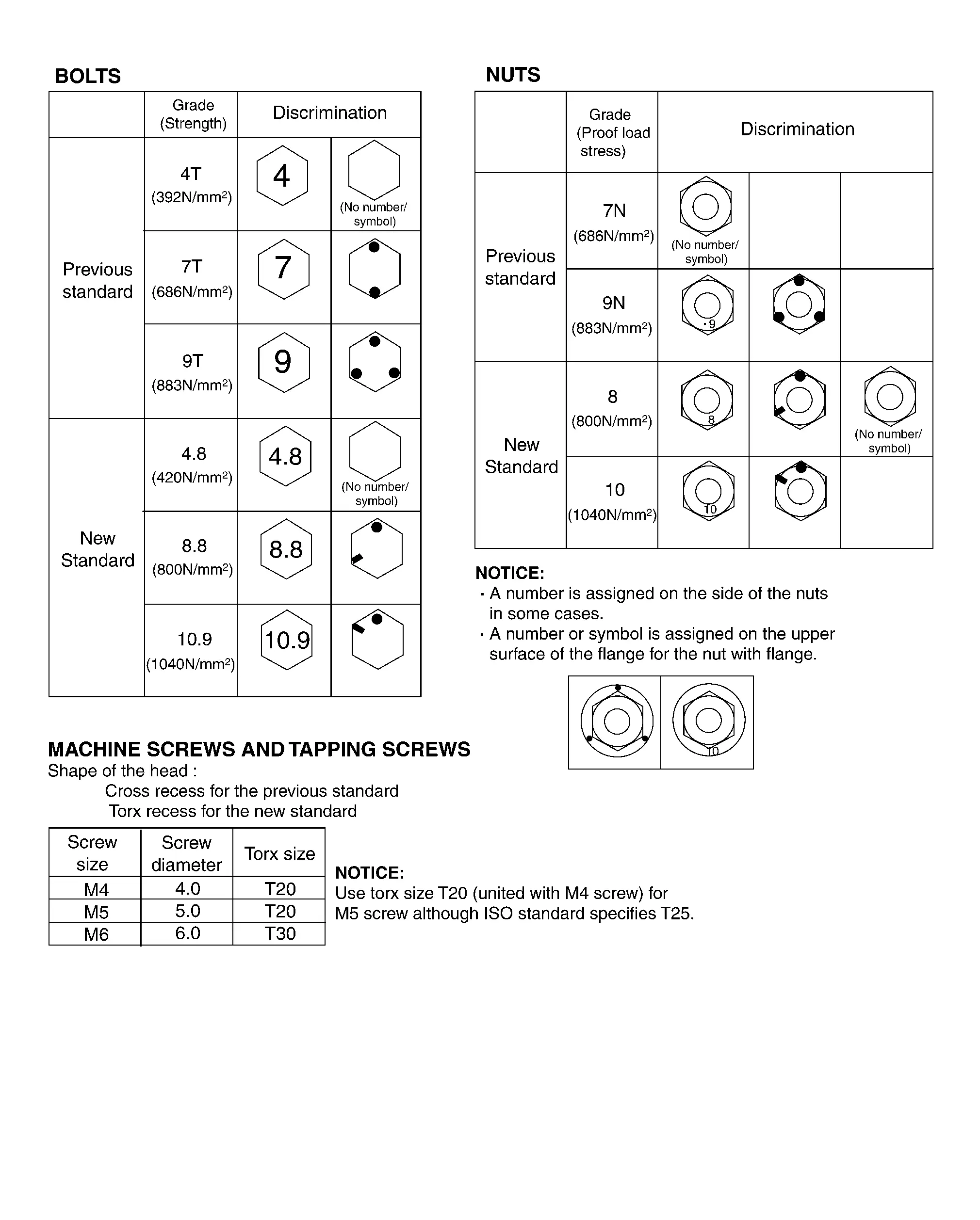 For guidance in discriminating, refer to Tightening Torque Table (New Standard Included).